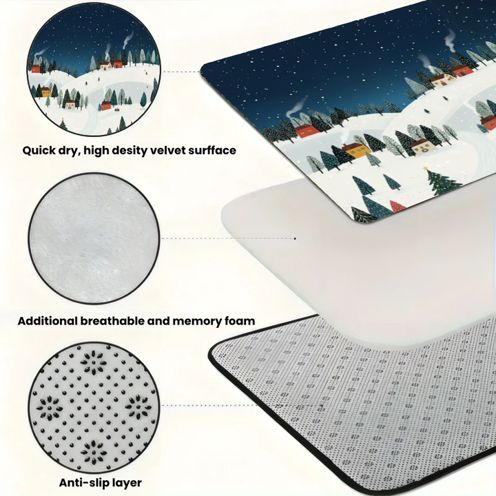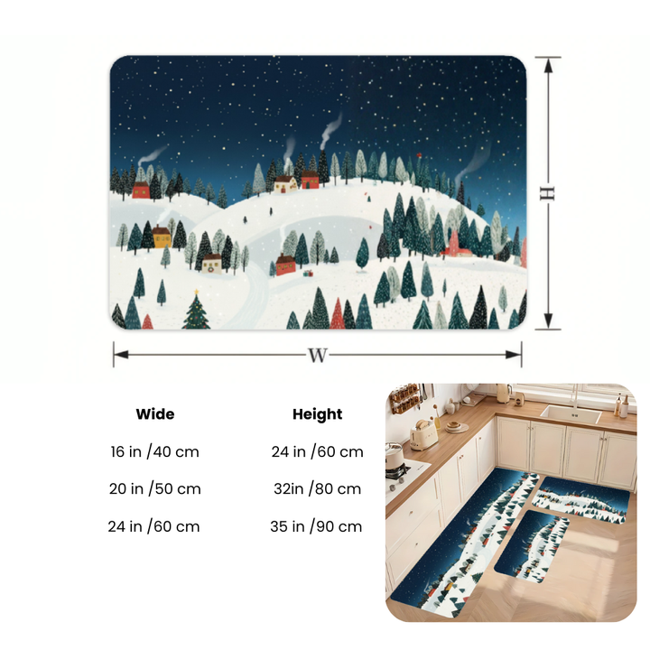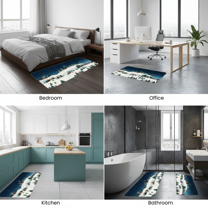 Whether you're placing it in a bedroom, living room, entryway, or playroom, this rug is built to handle busy households with ease. The quick-dry material stays fresh, and the fade-resistant colors keep the winter scene looking beautiful season after season. Cleaning is simple—just shake out debris, spot clean with mild soap when needed, and vacuum regularly. No fuss, no stress.