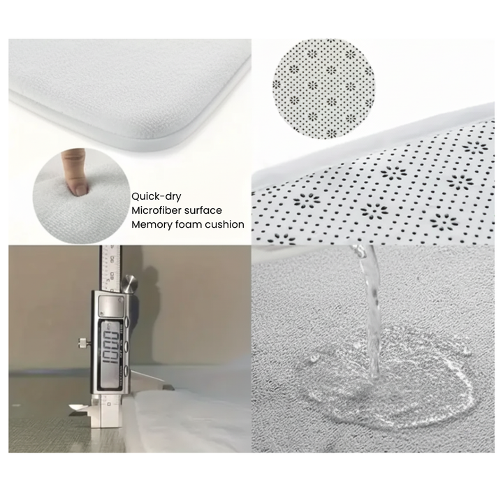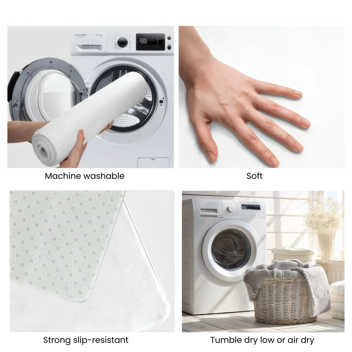 We've designed this rug with three thoughtful layers for ultimate comfort. The quick-dry, high-density velvet surface feels luxuriously soft and gentle against bare feet, while the breathable memory foam middle layer adds plush cushioning that makes every step a delight. The non-slip bottom keeps the rug securely in place on any floor, protecting your surfaces and preventing slips. It's perfect for kids and pets to play on, and naturally dampens noise throughout your home.